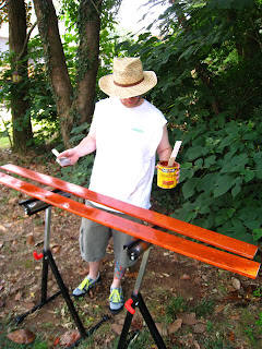 When we saw the GORM I was sure that it would be the perfect solution for my gardening supplies. The wood was untreated so Sam had to stain it. We used a color called "Gunstock" which we purchased from Home Depot. That was the most time consuming part of the project. We had to wait for each side to dry before he could stain the reverse.
